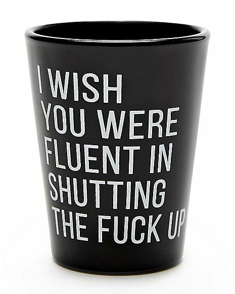 Let that annoying friend know you’d like them to shut up when you take a shot from this hilarious black and white shot glass!