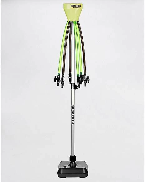 BONGZILLA The 6 tube Funnel Beer Bong that is mounted to a pole! This is the lastest technology in Multi-Tube Beer Bongs and is the newest Beer Bong in the Head Rush Beer bong Family. This product IS the life of the Party! The 6 Tube Funnel mounts on top of the free-standing, adjustable height pole! From 1 to 6 Drinkers can enjoy this product. Includes 6 funnel plugs. If there is less than 6 drinkers, plug the hole at the inside of the funnel and Party On! The BONGZILLA adjusts up to 6 feet high. It is a fixture at many parties to come!!