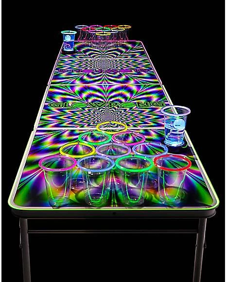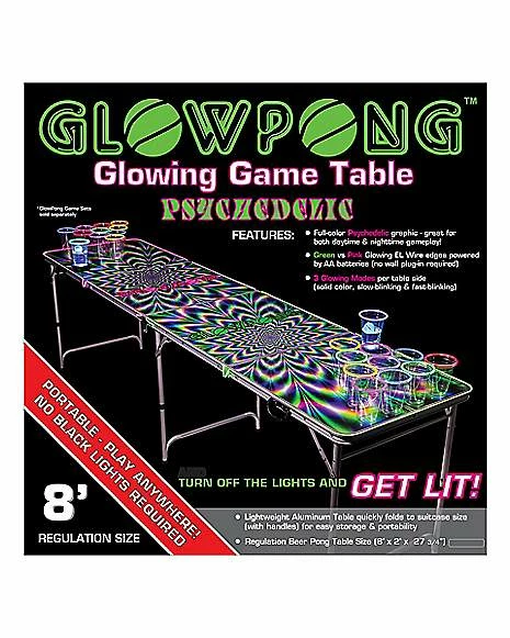 Turn out the lights and get lit at the next party with a game of beer pong. With this Glowing Psychedelic Beer Pong Table you’ll have everyone ready to get their balls wet! This awesome table is eight feet long and features glowing lights that’s perfect for any party.