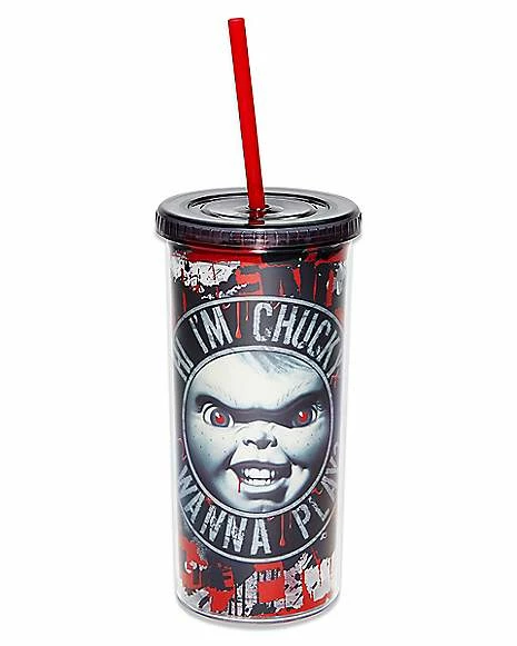 Looking for someone to play with? Chucky is always willing! This officially licensed tall cup with straw is the perfect way to stay hydrated throughout the day while showing off your love for all things horror!