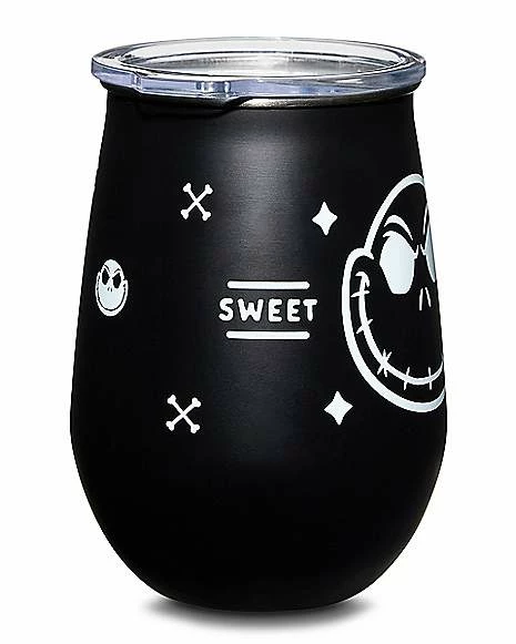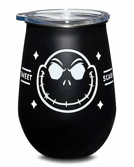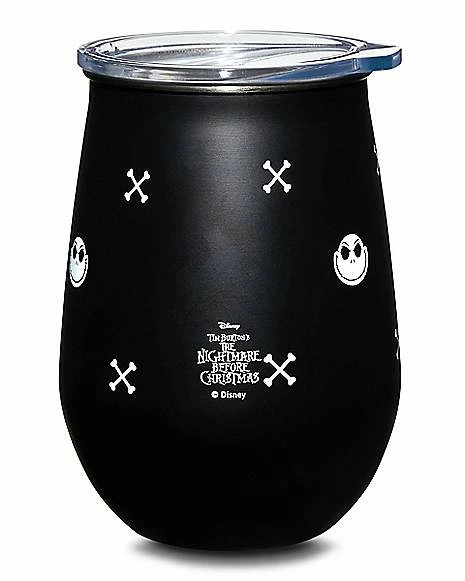 Drink up with some help from your favorite movie character with this official The Nightmare Before Christmas Jack Skellington travel wine glass! This portable glass with lid lets you drink on the go and look totally stylish while you do.