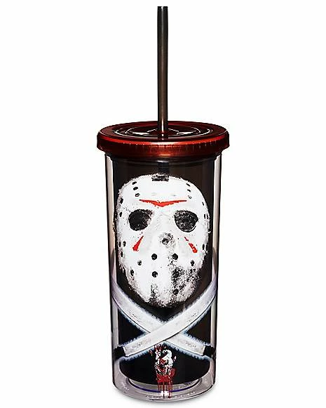 Show off your favorite horror movie with every sip from this official Friday the 13th Jason Voorhees mask cup with straw! This convenient cup is the perfect way to stay hydrated at home or on the go.